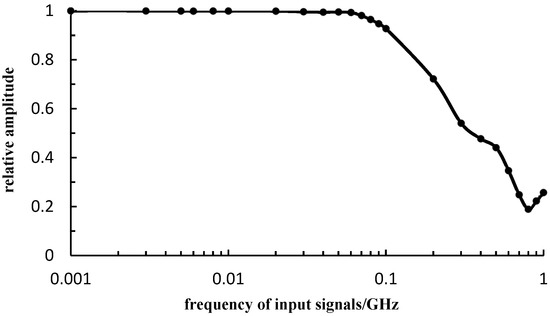 The measured frequency response results of the system are shown in Figure 9. It can be seen from the figure that the corresponding frequency when the measurement amplitude attenuates to −3 dB is about 200 MHz, that is, the bandwidth of the measurement system is not less than 200 MHz.