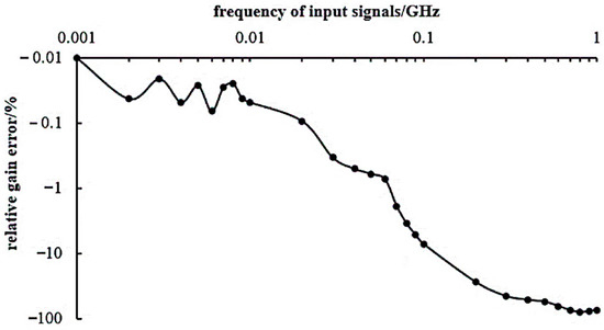Figure 10 shows the relationship between the gain error of the system and the frequency of the input signal. According to the diagram, the gain error of the system is less than 1% when the frequency of the signal undertest is in the range of 1 MHz to 70 MHz.