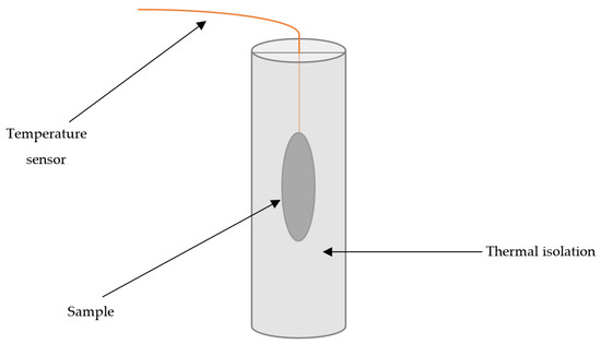Scheme of the placement of the fiber optic sensor, test tube, and polystyrene thermal insulation used during the temperature measurements.