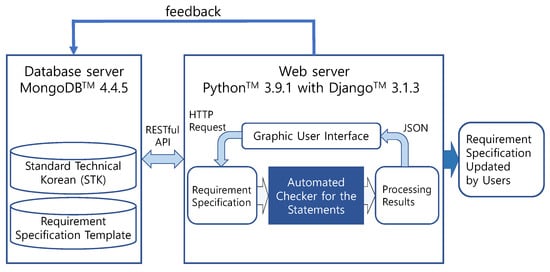 The system consists of a database server and a Web server. The database server includes a set of standard technical Korean (STK), which represents jargon in a specific domain, and a group of requirement specification templates as a reference document. The Web server and graphical user interface (GUI) of our system allow users to remotely access our system at any time. From the GUI, a sentence or a file of a requirement specification is fed into the automated checker using the HTTP request. The processing results that prove the soundness of the requirement specification are displayed on the output panel in the open standard format of JSON (JavaScript Object Notation).
