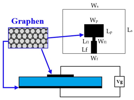 - Dash, S.; Patnaik, A. Behavior of graphene based planar antenna at microwave and terahertz frequency. Photonics Nanostructures-Fundam. Appl. 2020, 40, 100800. [Google Scholar] [CrossRef]