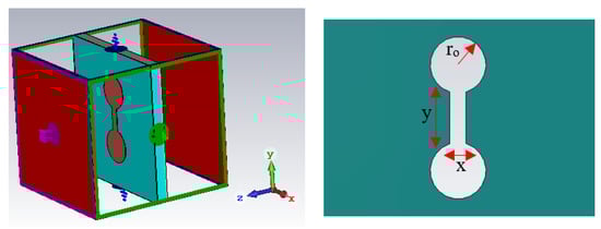 Simulation set up and dimensions for the Dumbbell-structure MTM unit cell.