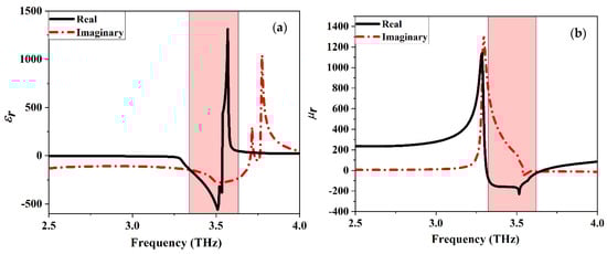 Extracted (a)permittivity and (b) permeability of Dumbbell-structure MTM unit cell.