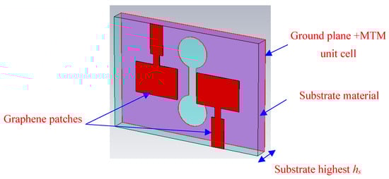 The new era of the 6 G wireless communication system has gained significant attention in recent years as a result of the growing need for greater data rates and ultra-high-speed connectivity. Around 2030, it is anticipated that the 6G wireless communication technology will be operational [1,2]. Terahertz (THz) frequency bands will be critical components of the 6G wireless communication infrastructure [3,4,5]. The evolution of the 6 G in terahertz frequency was the least studied band in the electromagnetic spectrum, owing to the unavailability of needed materials, sources, measurements, equipment, and detectors that operate inside the terahertz band [6]. The THz spectrum lies between the microwave and infrared in the range of 0.1–10 THz. Recently, the terahertz band has been emersed in different applications such as high data rate transmission in IoT applications [7], biomedical applications [8,9], material characterizations [10], and high-speed secure data transmission [11]. Numerous antennas have been developed for terahertz spectrum uses, including the Leaky-Wave antenna [12], Yagi-Uda antenna [13,14], Bow-Tie antenna [15], Monopole Antenna [16], and log-periodic antenna [17]. The planar microstrip patch antenna possesses numerous advantages over the other types due to the low cost of manufacturing, low profile, simple structure, and Monolithic Microwave Integrated Circuit (MMIC) compatibility. Although, the metallic microstrip antenna suffers from low antenna performance such as gain, bandwidth, and radiation efficiency, especially on the scale of micrometer due to the low conductivity and mobility [18]. The limitation of the metallic planar microstrip patch antenna due to its drawbacks pushes researchers to the usage of 2D organic materials such as graphene, which is extracted from graphite [19,20,21]. The graphene utilization as a radiating patch treats the shortage of metallic materials. Graphene as a single-layer honeycomb lattice structure has excellent electrical, mechanical, thermal, and optical properties [22]. The most important property of graphene is the ability to support the propagation of the surface plasmon polariton (SPP) waves at the THz window. Additionally, graphene conductivity can be adjusted dynamically by applying an electric field via an external gate voltage, which alters the chemical potential and hence the conductivity [23]. As of today, research in millimeter-wave technology is advancing toward commercial implementation and is still spurred by the scarcity of bandwidth; the terahertz (THz) band is envisioned as the near future frontier for communication. In the present day, improved channel capacity and a high data rate are required for wireless communication to fulfill requirements. So, MIMO-communication systems operating in the THz range with data transfer rates of up to Tera-bit/sec (Tbps) are required [24]. Moreover, there are always some obstacles to the THz wireless communication frequency band such as high attenuation, Multipath fading, absorptions, and path loss. So, the MIMO system is a good candidate to face these problems.