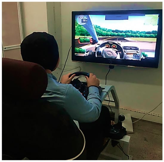 Eleven graduate students ranging in age from 22 to 30 years old participated in a driving simulation assessment. All participants were required to have a valid driver’s license and to never have driven in a driving simulator before. The experiment’s participants were all right-handed. A moral license number IR.TBZ-REC.1399.6 was issued to experiment with at the Biomedical Engineering Department’s Signal Processing Laboratory at the Faculty of Electrical and Computer Engineering, University of Tabriz. Before the experiment, all respondents were invited to freely confirm their participation by completing a permission form and recognizing the exam conditions (no history of psychiatry, epilepsy, or fatty food, pre-testing hair washing, adequate sleep throughout the night, and no pre-testing coffee). The experiment utilized a G-Tec 32-channel EEG recorder, an MSI laptop (Corei7 and 16 GB of RAM), a Logitech G29 Driving Simulator, a City Car Driving Simulator, and a Samsung 40-inch LCD. Figure 1 depicts the subject’s EEG signal recording during driving in the simulator. The EEG signal was recorded using the worldwide standard 10–20 electrode placement technique, with a sampling frequency of 1000 Hz and two A1 and A2 channels as reference electrodes. Before the experiment, all participants utilized the simulator to familiarize themselves with the device and the objective assessment. The driving path in the simulator was designed to simulate a uniform highway with no traffic to create mental fatigue in the driver. The final 3 min EEG data were classified as a normal stage, while the driving process lasted 20 min. The driving procedure continued for 60–100 min, or until the participant’s questionnaire, until findings (MFI scale) indicated that the subject had reached the driver’s fatigue stage. The subject’s final three minutes of EEG recordings were labeled as fatigue.