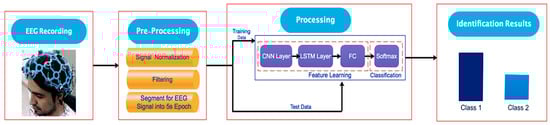 The following is the remainder of the paper: Section 2 explains how to collect EEG data using a mathematical foundation in the CNN and LSTM disciplines. Section 3 deals with the method proposed. Section 4 presents the simulation outcomes and compares the present study with recent studies. Section 5 examines the advantages and disadvantages of the suggested methodology and suggestions for future work. Finally, the conclusion is dealt with in Section 6.