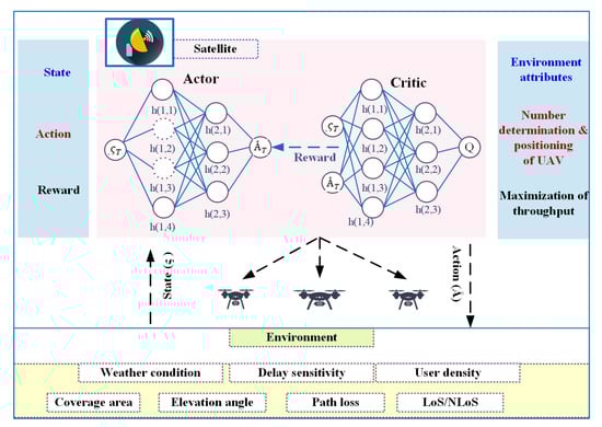 - A satellite that uses dynamic positioning-based soft actor-critic (DPSAC) algorithm is considered to estimate the required number of UAVs and dynamically position the UAVs, thereby reducing communication delay and maximizing the throughput and coverage.