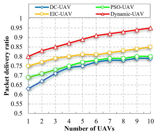 Compared to previous methodologies, Figure 13 shows the number of packets captured as a function of UAV speed. In proportion to the speed of UAVs, the pace of packet collection slows down. The Dynamic-UAV technique has a greater packet-collecting rate than previous approaches.