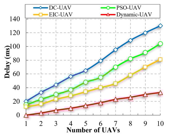 Delay vs. Number of UAVs.