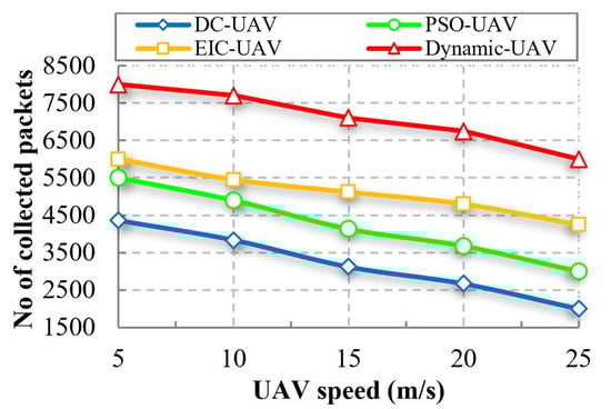 Number of the collected packet compared to UAV speed.