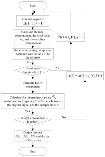 LMD decomposition: Enter the residual sequence into the LMD decomposition to obtain the n-group product function PF, LMD decomposition flowchart, as shown in Figure 3.