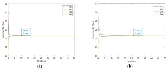 To verify the rapidity of the convergence result of the scheduling algorithm, the same output power data are scheduled using the classical consistency algorithm. The slightly increasing rate pair with a random time delay is shown in Figure 14.