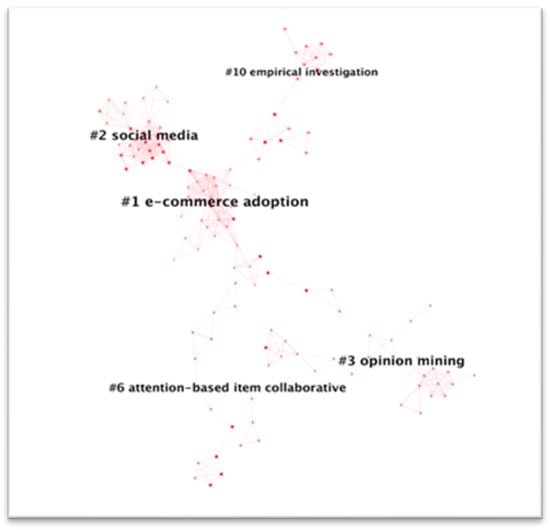 To enable a comparison between electronic commerce and cybersecurity fields of research by keyword node, a new analysis for 10,242 qualified records was run. The major themes for cybersecurity are divided into sixty-nine clusters with the three preeminent presented in Table 7.