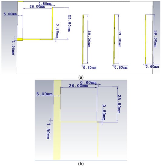 (a) Yagi–Uda element—Top view.; (b) Yagi–Uda element—Bottom view.