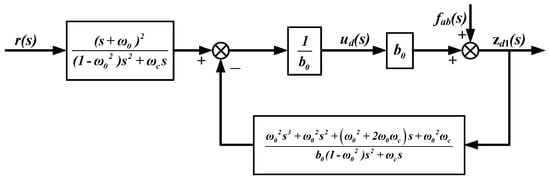 We conducted an overall analysis of the BS-LADRC control strategy, which combined Equations (9) and (30) to obtain the respective transfer functions of the system output zd1 with the tracking reference signal r and the total disturbance fab. It represented the tracking performance and antidisturbance performance of the system.