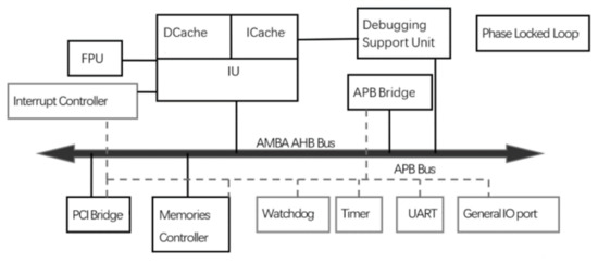 The research object is a 32-bit radiation-hardened microprocessor, which has all the typical characteristics of complex ICs, such as large scale, high frequency, multiple modules and complex functions. The system-level error detection and correction are adopted by the radiation-hardened microprocessor. The circuit consists of an integer processing unit (IU), a floating point processing unit (FPU), CACHE, register (REGFILE), a debugging support unit (DSU), a serial port (UART), a storage/interrupt controller, a watchdog, a timer, and other units, which realize data interaction through AMBA bus. The functional block diagram of a microprocessor is shown in