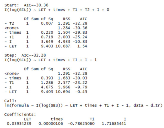 . Since the value of the SEU soft error cross section must be positive, and the right side of the equation takes the value of the entire real number domain, we take the logarithm of the SEU and put it into the model, that is, taken as the link function of Poisson regression. The model is linear with respect to unknown parameters, but nonlinear with respect to several known independent variables. Here, the function