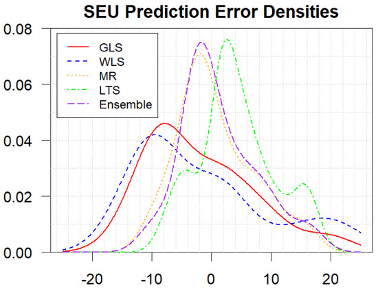 11], the most commonly used evaluation method, as an example, Ensemble and the MR method have relatively low RMSE in the training set and the validation set, while the other three methods have relatively large evaluation errors in validation set. The MR method, as one of the robust parameter estimation methods, shows a lower evaluation error in the training set and the validation set compared with the GLS and the WLS methods based on Gaussian distribution, indicating that the error of SEU data collected in the experiment may be non-Gaussian distribution, or Gaussian characteristics are not obvious due to small samples. It also verified the reliability of the MR and the Ensemble methods in data modeling, that is, the quantitative evaluation model established by us is effective, and it has a certain accuracy.