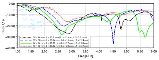 Proposed Antenna 2 Rogers RT/duroid 6010 (10.2) | 30.32 × 60 × 5.76 | 1.9–5.4 GHz | No |