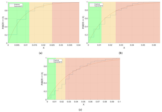 For instance, in Figure 2 we can observe the BER Cumulative distribution function (CDF), fitted with an exponential distribution, of three representative links observed during the trial.