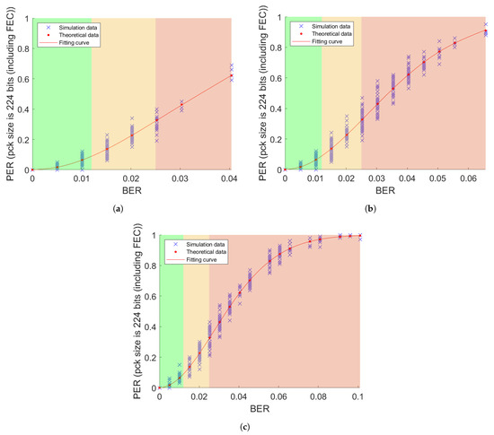 With the BER thresholds presented above, the corresponding PER thresholds follow: