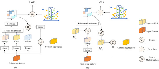 The matrix M can be shared to learn the macrorelationship between the overall data samples. Similar to the shared MLP operation of PointNet, the memory units calculate the attention for each point and establish the microrelationships (relationships between the self-attention pairs).