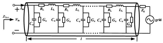 The equivalent input impedance Zline seen from the head end of the line in Figure 4 is shown in Equation (14). Zline represents the equivalent impedance of transmission line and power grid: