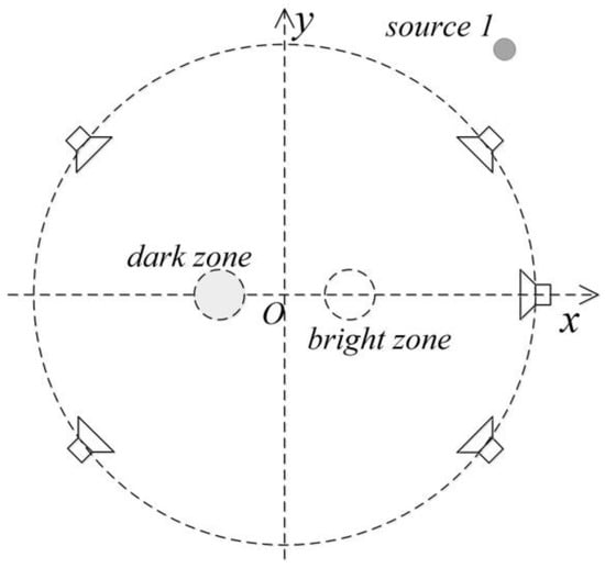 34], they proposed a private sound system based on a circular array and the weighted pressure matching method. The proposed system is suitable for different application scenarios. When the input energy is limited, users can control the quality and directivity tradeoff by setting the expected characteristics of the acoustic field frequency response in the listening zone. The weighted pressure matching method weight in the dark zone is set to control the tradeoff so that the input signal meets the expected constraints. Experimental results show that this method is effective over a wide range of frequencies. Badajoz et al. proposed a combined pressure matching and binaural control technique for distance and direction sensing [