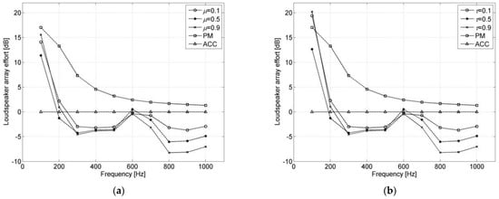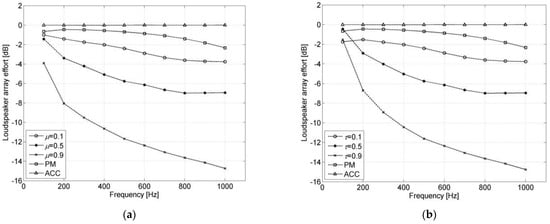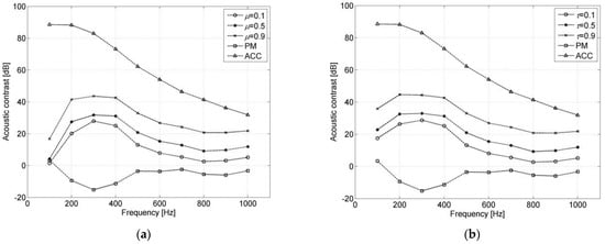 26], which is closely related to the ACC method. The EMD method is used to optimize the energy difference between the bright zone and the dark zone, but the ACC method optimizes the energy ratio between the bright zone and the dark zone. Pressure matching (PM) is a numerical optimization method to make the reconstructed sound field approximate to the desired sound field [