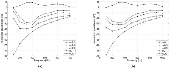 33]. In the zone without accurately reproducing the target, the weight value of the reconstruction error is low with the weighted pressure matching method; the linearly constrained pressure matching method imposes linear constraints on the reconstruction accuracy of the target signal in the specified zone. Experimental results show that the weighted pressure matching method has a good balance between the accuracy and directional performance of sound field reconstruction. Additionally, in study [