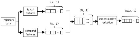 The feature extraction process determines the clustering performance. Spatial and temporal are the essential features of trajectory data, so trajectory data is also called spatio-temporal trajectory data. The temporal features mainly reflect the correlation between the track points. The spatial features mainly reflect the overall shape of the trajectory. The current mainstream methods are biased towards the extraction of trajectory temporal features, regard trajectories as a kind of time series data, and use time series networks, such as RNN (recurrent neural network) [] and LSTM (long short-term memory) [] to process trajectory data. This type of method can effectively extract the temporal features of the trajectory, but its ability to extract the spatial features is insufficient.
