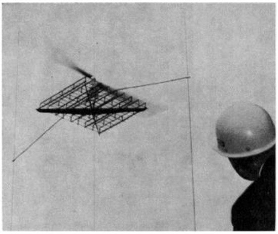 - Brown, W.; Mims, J.; Heenan, N. An experimental microwave-powered helicopter. In Proceedings of the 1958 IRE International Convention Record, New York, NY, USA, 21–25 March 1966; pp. 225–235. [Google Scholar]