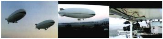 In 2014, Shandong Aerospace Electronics Technology Research Institute conducted a dynamic test of LWPT technology between two airships, as shown in Figure 13. The distance between the two airships was 50 m~100 m, the speed was 5 m/s, the input power was 88 W, the maximum receiving power was 13.43 W, and the maximum transmission efficiency was 16.08% [51].