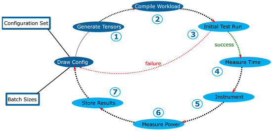 The data collection itself is built using TVM to be able to target a wide range of platforms and automatically apply the best target-specific optimizations. For this work, the execution time, power consumption, and memory allocation have been recorded. However, due to its modular design, every metric that can be measured during the layer workload execution can be recorded.