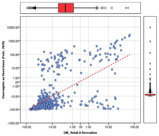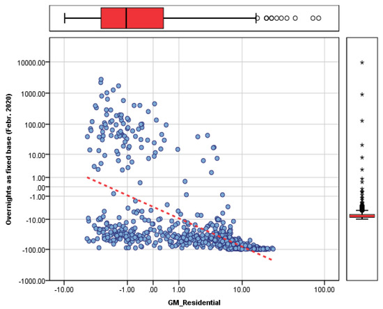 As shown in Table 4, three of the six Google Mobility indices are good predictors and are statistically significant for overnight stays as a fixed base (February 2020), in order of importance according to values of the standardized beta coefficients and based on the relative strengths of our predictors:
