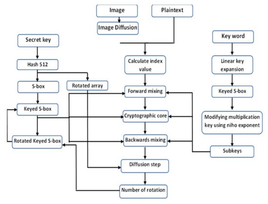 Cryptography is a modern encryption technology made up of a variety of mathematical processes requiring the application of formulas and algorithms. It was created to safeguard the confidentiality of military and diplomatic communications. A new market for cryptographic products has emerged as information technology and encryption science have advanced rapidly []. While the internet is currently being utilized to speed up the movement of huge amounts of critical and valuable data, these data must be protected from unauthorized access due to the internet’s multiple attack vectors []. To secure data from illegal access, many data protection techniques are used, including masking, watermarking, and encryption. Effective security technology is required to protect consumers’ sensitive digital data [].