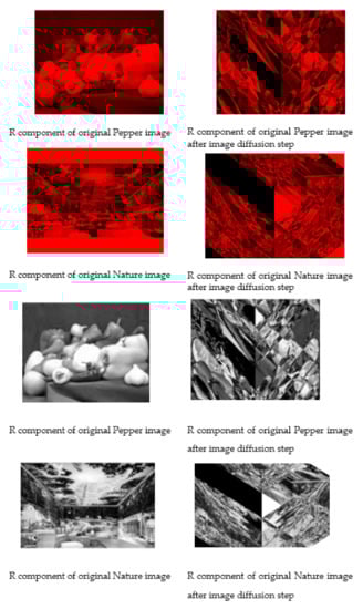 These steps will be performed after forward mixing, cryptographic core, and backward mixing. Figure 6 illustrates how the image diffusion step makes randomization in the image.