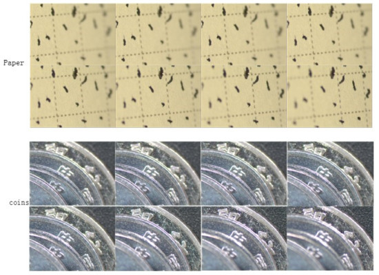 We first took two sets of multi-focus images using a microscope and Basler industrial camera acA640, as shown in Figure 4.