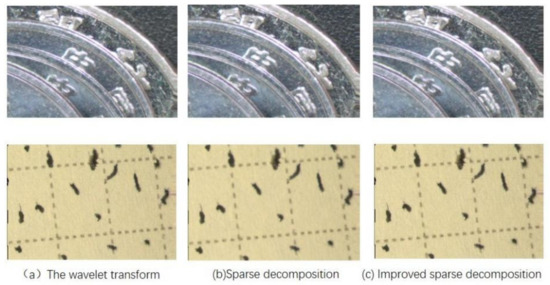 According to the results, the DWT-SR algorithm provides better contrast. That is, the image is clearer. To sum up, DWT-SR is more suitable for multi-focus image fusion [29,30,31] in the microscopic scene than others. With regard to CPU response time, DWT-SR’s operation speed is faster than the SR algorithm, which is increased by one order of magnitude and improves the existing problems. The DWT algorithm does not require sparse approximation for each image block, so the calculation speed of the DWT method is higher than that of the DWT-SR method. However, the effect of the DWT algorithm is worse than the DWT-SR method for the same reason.