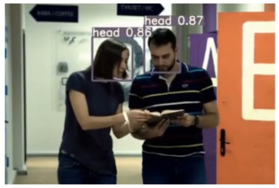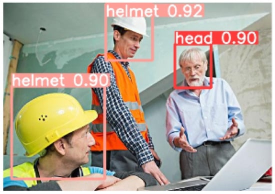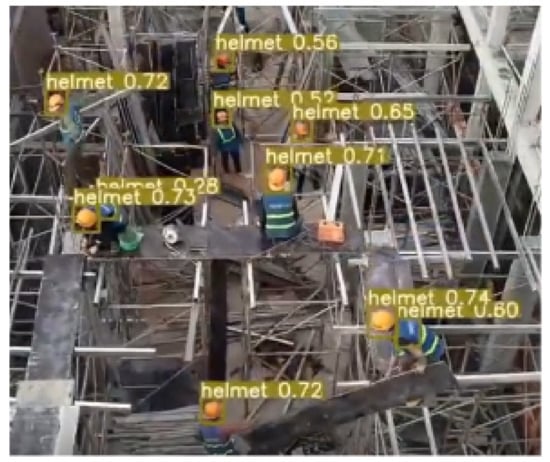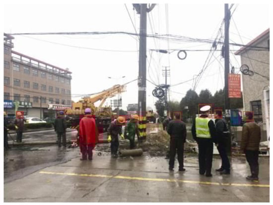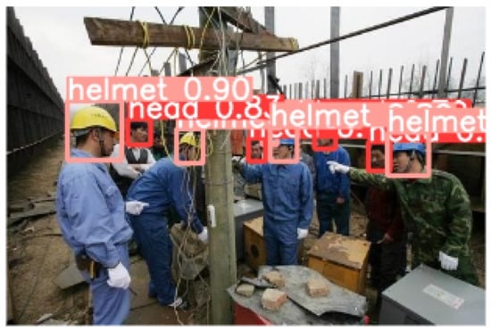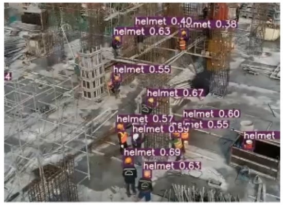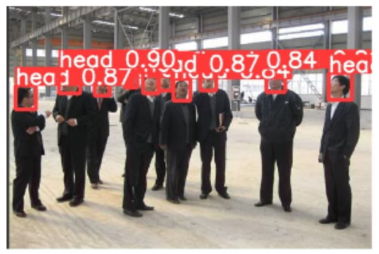 As shown in Figure 14, our model detected and classified the people who were wearing the safety helmets or not well, even if there are a lot of  people.