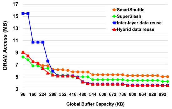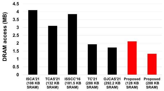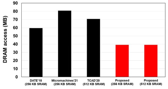 Comparison results with recent works such as [24,25] are presented in Figure 8 together with SmartShuttle [11]. From the figure, it can be observed that with the same amount of on-chip memory, our method can achieve 46.7% and 51.6% of off-chip memory access reduction when compared to the recent works [24,25], respectively.