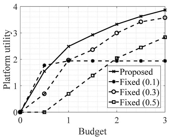 According to the results depicted in Figure 5, the proposed incentive mechanism also achieves higher platform utility, compared to fixed reward schemes. This is also not surprising since the auction-based mechanism guarantees that all participants reveal their private cost information truthfully, hence the platform can extract more surplus from sensing participants by setting an appropriate amount of reward.