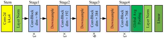 - Liu, Z.; Mao, H.; Wu, C.Y.; Feichtenhofer, C.; Darrell, T.; Xie, S. A ConvNet for the 2020s. arXiv 2022, arXiv:2201.03545. [Google Scholar]