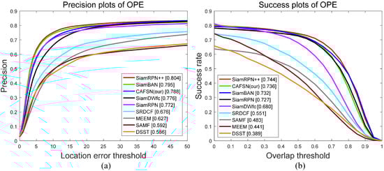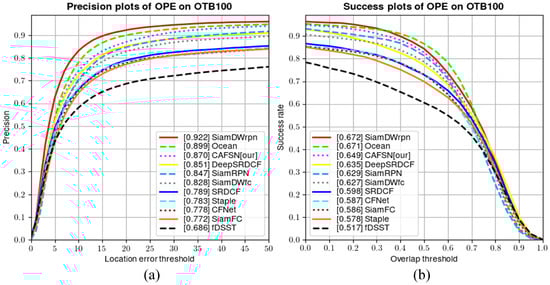 Comprehensive network performance evaluation results based on OTB100 dataset. (a) is the precision. (b) is the success.