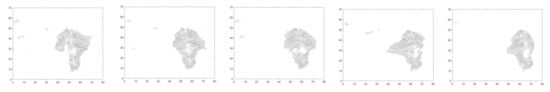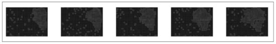 Dynamic gait feature extraction with sub-pixel motion estimation [95] is extended for spatio temporal power spectral feature extraction. Figure 3 shows the DGF computed for consecutive steps of the gait cycle. The adaptation of sub-pixel motion estimation is mentioned in Equations (1) and (2). Equation (3) represents the DGF computation for different views and appearances.