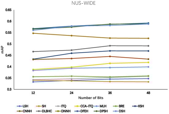 mAP for different hashing techniques for different bits on NUS-WIDE.