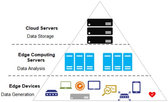 The fast proliferation of the Internet of Things (IoT) and the availability of multiple cloud services has given rise to a new concept, known as edge computing (EC), which allows data processing at the network edge. Not just in the future Industry 5.0, but also in the transition to Industry 4.0, EC can provide substantial value. EC can address latency costs, battery life limits, reaction time demands, data security, and privacy []. EC reduces communication costs and ensures that applications run smoothly in remote locations. Additionally, EC can process data without sending them to the public cloud, reducing security concerns for Industry 5.0’s major events. Data processing, cache coherency, computation offloading, transporting, and delivering requests are all things that EC can do. The edge must be designed effectively to assure protection, stability, and confidentiality with these network services. EC provides high throughput, data protection, and anonymity for Industry 5.0 applications and provides quality service to target consumers []. Furthermore, EC delivers real-time connectivity for next-generation Industrial 5.0 technologies, such as UAVs, driverless cars, and remote medical services [].