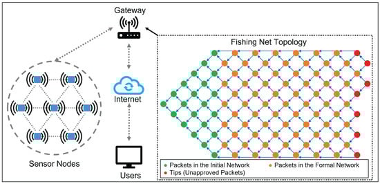 In Wireless Sensor Networks (WSNs), many sensor nodes transmit data to a gateway, making the data available to users through the Internet. We propose a Blockchain topology designed for WSN applications called Fishing Net Topology (FNT) because its structure is similar to a fishing net. In the gateway, we use the FNT structure to verify the data and make it available for secure and fast transmission, as shown in Figure 2.