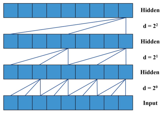 Figure 11. The TCL is particularly useful in three ways. Firstly, it can retain all the historical information and compute long-term historical information using causal convolution. Secondly, it uses dilated convolution to extend the receptive field of the convolution process. The dilation rate varies according to a convex function, which allows the model to compute deep features without losing any local information due to an oversized receptive field. Finally, it is entirely composed of convolutional networks and uses a multilayer residual structure instead of the traditional “gate” structure. Furthermore, TCL overcomes the traditional RNN issues of not supporting parallel computation and slow training speed [