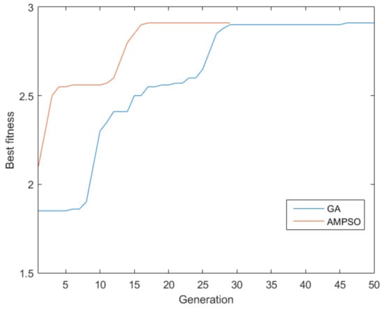 The genetic algorithm (GA) is a group search algorithm based on the natural selection of the biological evolution process. It has a strong search ability and is not limited to the specific model. In addition, GA can provide effective support for most kinds of complex decision optimization problems [50,51,52]. The GA can be understood as follows: given a map and parameter optimization problem , we need to determine the set , in which A is a nonempty set and i is a positive integer. We can construct mapping and defined on G and its subsets , respectively. On this basis, we can obtain the following formula.